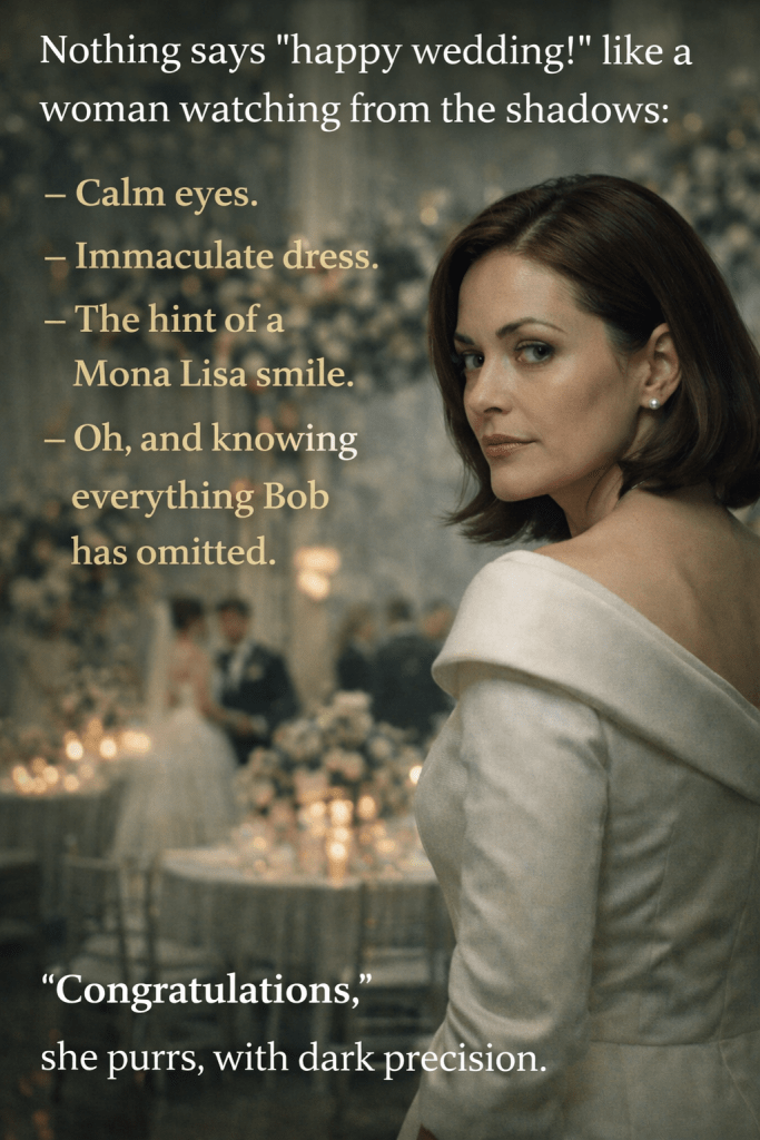 Good evening, all. For those who aren’t aware, I’m Rachel, Bob’s cousin. I’ve had the honour of walking him each step of his romantic journey— each one.