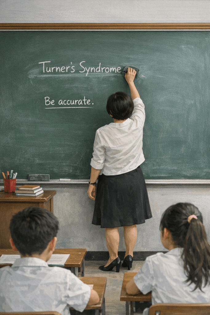 “Turner’s Syndrome is not a medical disease in the way Chicken Pox is, but it is a condition that presents some difficulties for those who have it.”
