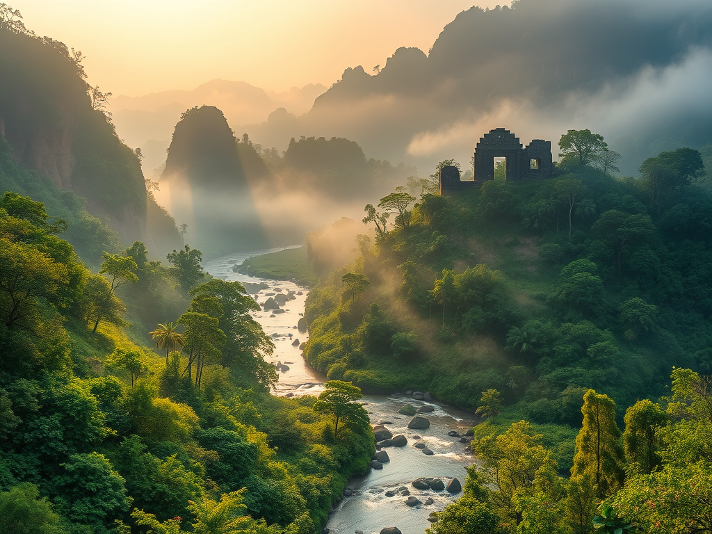A dense forest fringed the edge of the town, its thick shrubbery rustling like gentle whispers. The weight of generations-old trees, leaves brown with age – pressed on one’s shoulders.
